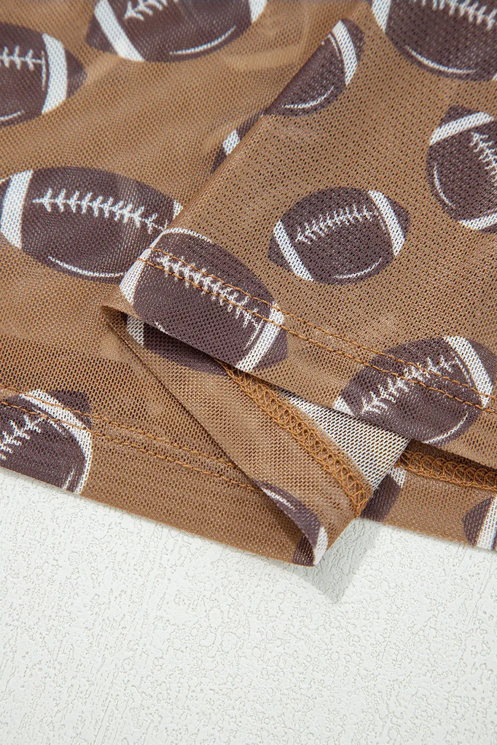 Brown Game Day Rugby Mesh Sheer Long Sleeve Top