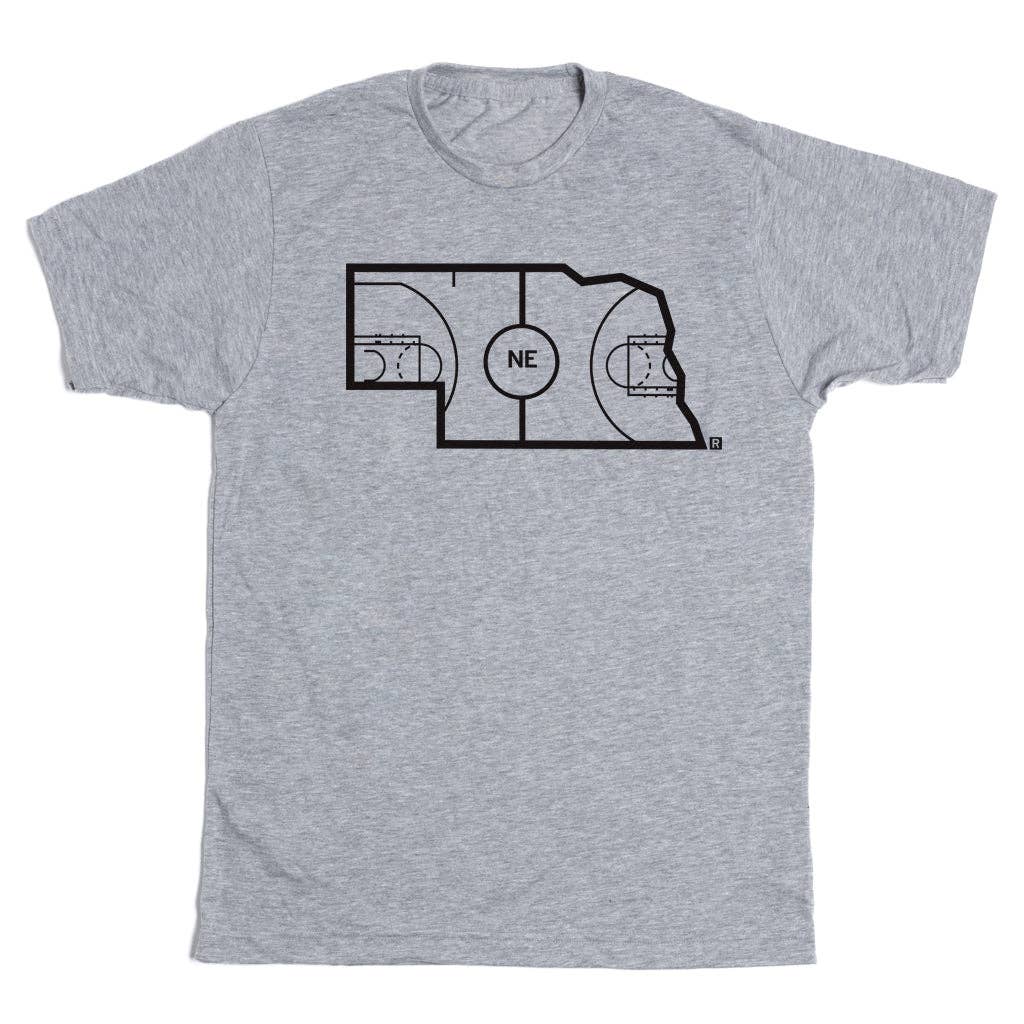 Nebraska Basketball. A Portion of All Raygun Sales Raise Money For Organizations That We Support. Black Screen Print on a Heather Grey T-shirt (65% Polyester / 35% Combed Ringspun Cotton). Cut and sewn sweatshop free. Designed and printed by Union Labor at RAYGUN.